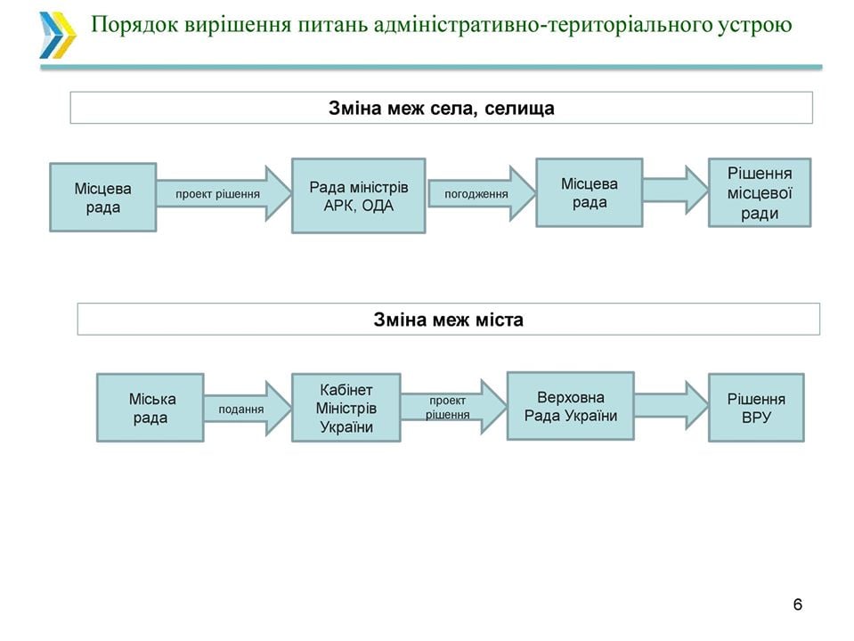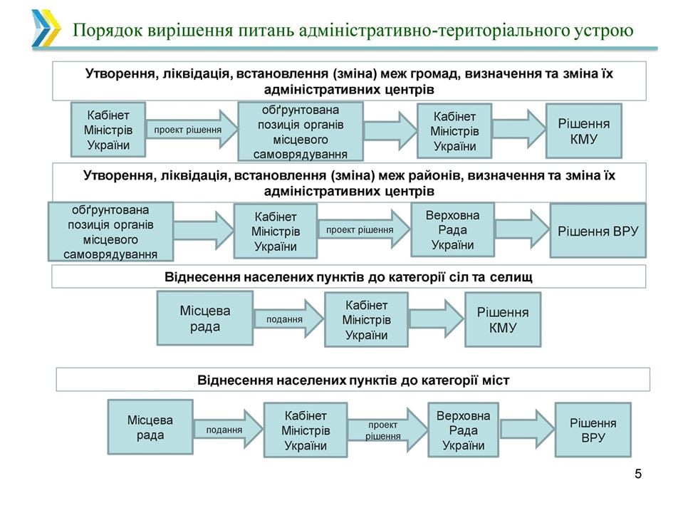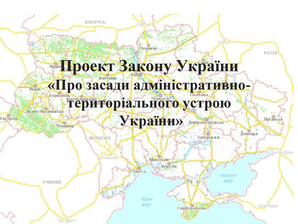 Уряд схвалив законопроект «Про засади адміністративно-територіального устрою України», який визначає основні засади адміністративно-територіального устрою України, порядку утворення, ліквідації, встановлення і зміни меж адміністративно-територіальних одиниць та населених пунктів.